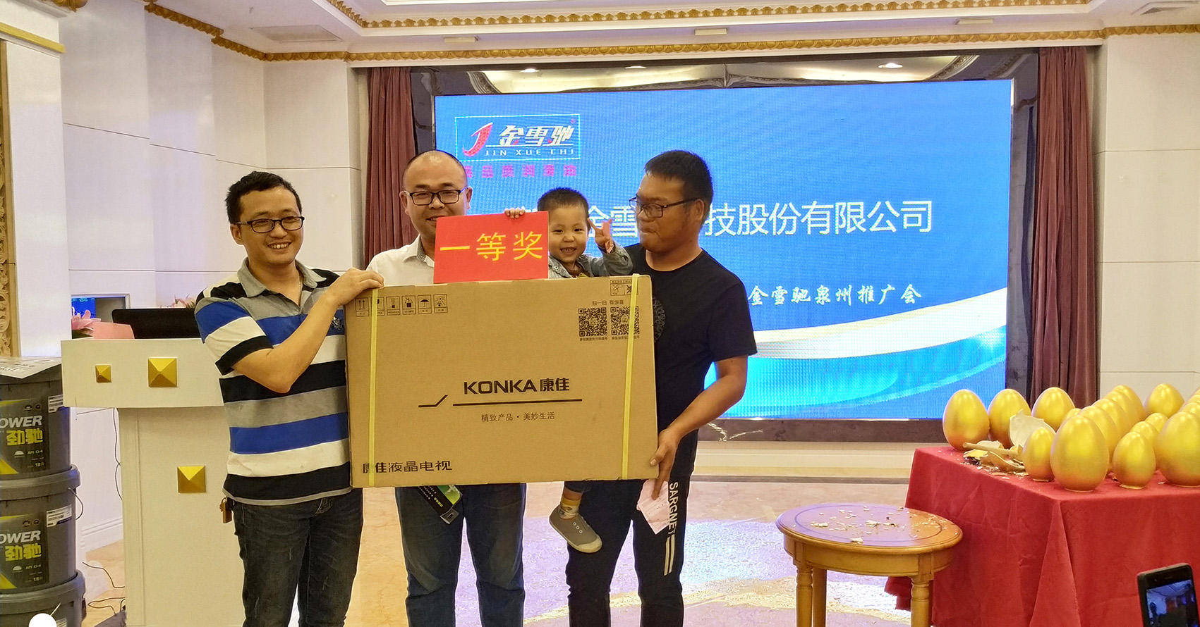 隨著主持人現場訂貨政策的宣布,參會嘉賓朋友們的激情被調動起來!會場上,金蛋砸出了一個又一個大獎,液晶電視、電飯煲、電磁爐……各項大獎紛紛被現場客戶們抱走。會場外,現場訂貨熱烈,排隊付款、刷卡不斷,現場氣氛高昂,不斷傳來大額訂單的消息!伴隨著掌聲、歡呼聲、尖叫聲、金蛋的碎裂聲,金雪馳潤滑油泉州地區品牌推廣會取得了圓滿成功。