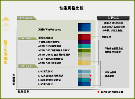 • 嚴格的認證要求(包括受控行車試驗和獨立委員會評審-LRI)Lubricants Review Institute Gear Oil Review Committee