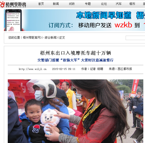 2015年金雪馳在廣西梧州春運站做“溫暖回家路”的公益大型活動,在金雪馳各位同事的努力后,本次溫暖回家路得到的社會各界的大力好評