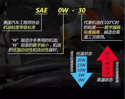 表示低溫時的粘度等級分別符合SAE15W、10W、5W的要求、高溫時的粘度等級分別符合SAE40、50的要求,屬于冬夏通用型。