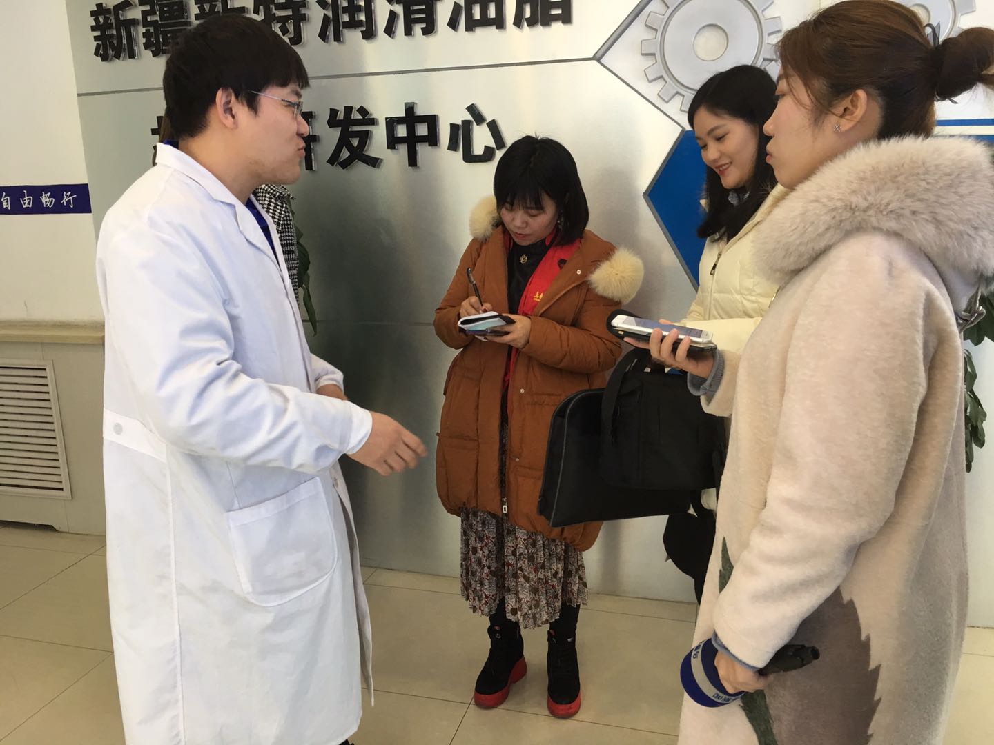 媒體團一行先后參觀了金雪馳烏市數字化生產車間、先進潤滑材料中心、榮譽展示廳。在金雪馳先進潤滑材料研發中心,媒體團一行對研發人員正在進行的地鐵、BRT等軌道交通設備超低溫潤滑油潤滑脂顆粒雜質測試興趣濃厚。這款低溫潤滑油產品——金雪馳極寒節能高鐵專用齒能油,專業耐低溫可達-55℃,滿足長期處于低溫狀態及室外冰雪天氣運轉作業的機械設備潤滑防護,目前已通過中國中車高速列車傳動系統測試,預計今年下半年將投入市場。”以前,像風電產業、軌道交通等使用的高端潤滑油只能使用進口產品,而如今金雪馳研發的高端潤滑油、植物油將改寫這一歷史,價格也比進口產品降低30%左右,真正實現了進口潤滑產品國產化替代。