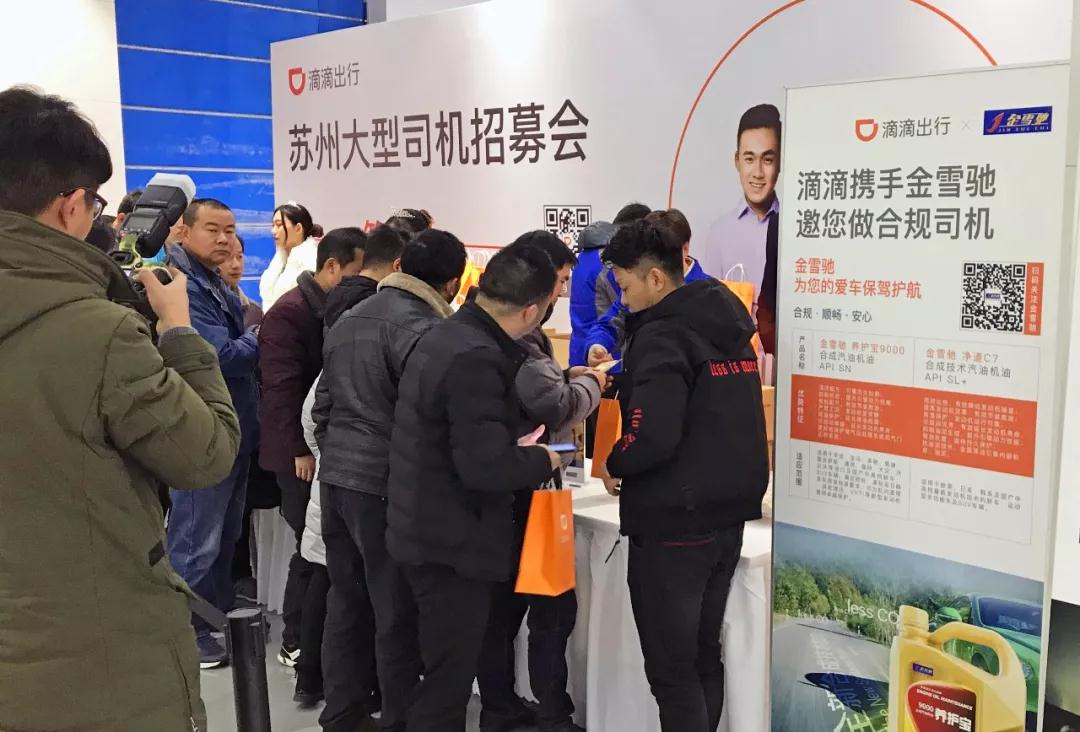 12月15日,由滴滴出行攜手新疆金雪馳科技股份有限公司(簡稱“金雪馳”)主辦的“2018滴滴出行(蘇州)大型合規司機招募會”在蘇州隆重舉行,蘇州近1000名車主參與,現場十分火爆。
