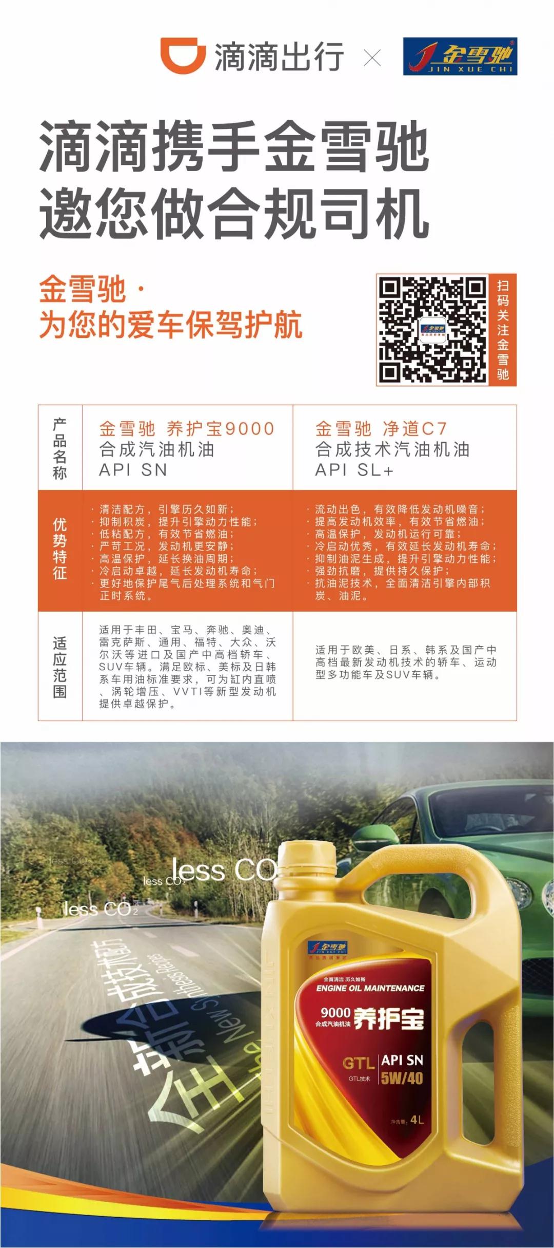 此次合作只是金雪馳在全國范圍內與滴滴開展戰略合作的開始。后期,金雪馳將在全國重點區域與滴滴開展持續合作,以高品質潤滑產品和全面快捷的用油服務助力全國車主安全出行。
