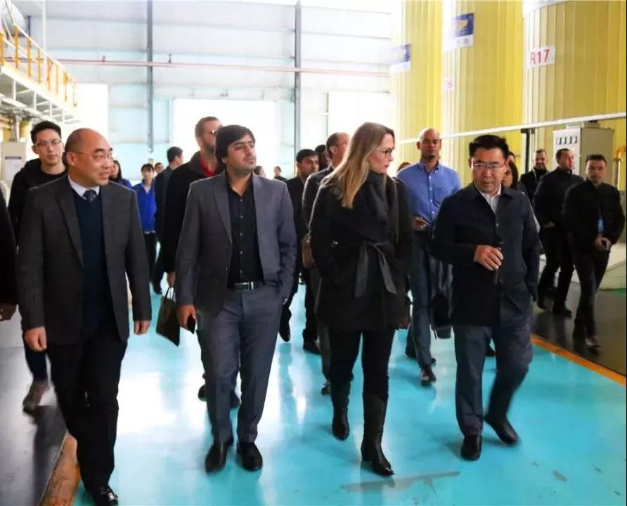 11月17日,約40名“一帶一路”國家商協會代表組成的考察團到訪金雪馳科技(馬鞍山)有限公司(以下簡稱“金雪馳馬鞍山公司”)參觀考察,雨山區區委常委陶恩春、金雪馳科技股份總經理田曉如、金雪馳馬鞍山公司副總經理張紀恒陪同參觀。