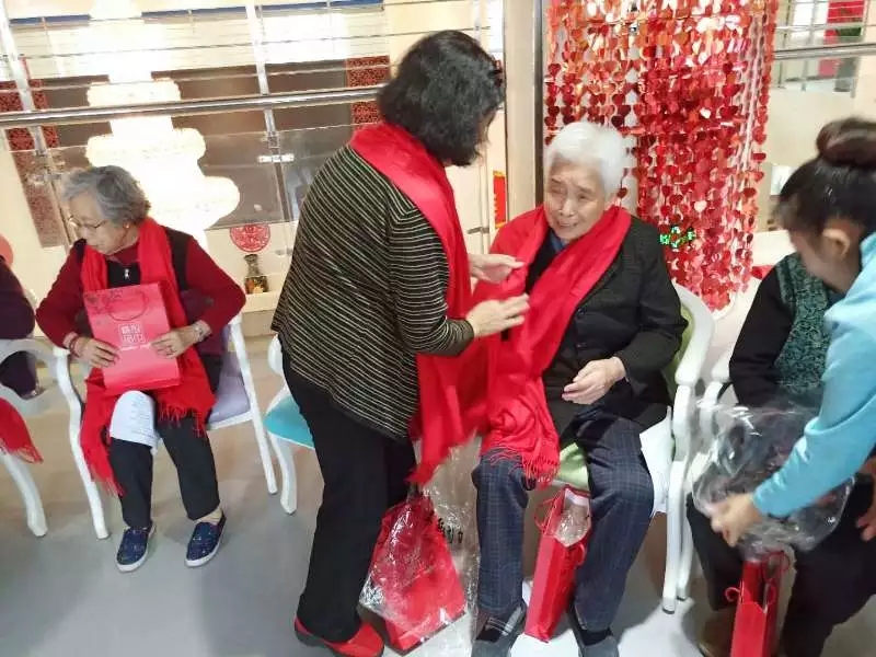 一進養老院的大門,金雪馳愛心小組成員就聽到陣陣的歌聲……工作人員介紹說,這里坐的老人最年輕的都是80多歲了,老人們知道金雪馳愛心小組要來,一早就等著啦!歡聲笑語中,金雪馳愛心小組成員為每一位老人戴上了圍巾,與老人們度過了愉快的下午時光。有一位92歲高齡的奶奶為了表達感謝,即興說了一段"大實話"的順口溜,老人樸實的語言,深深印刻在了在場所有人的心里。