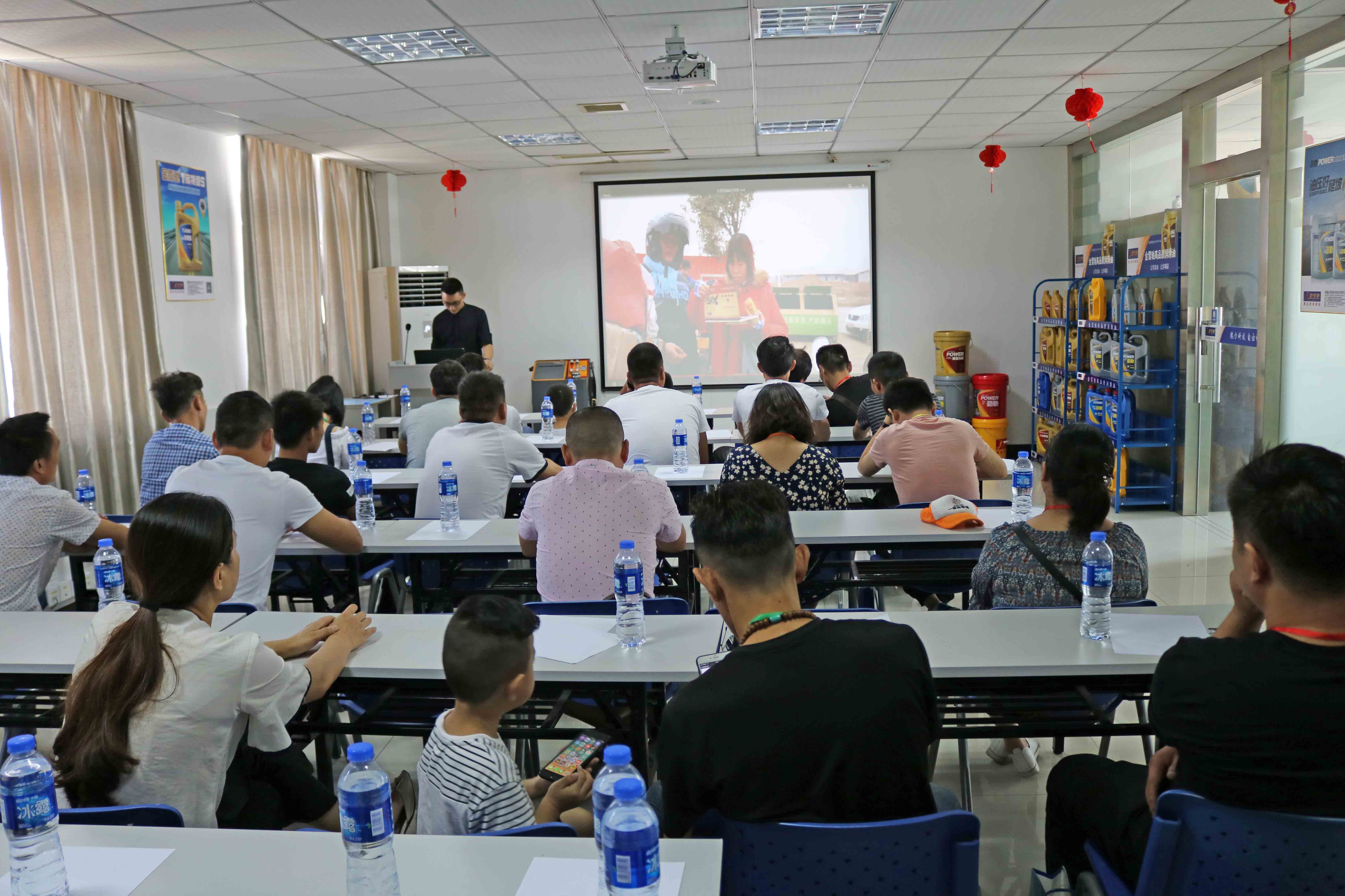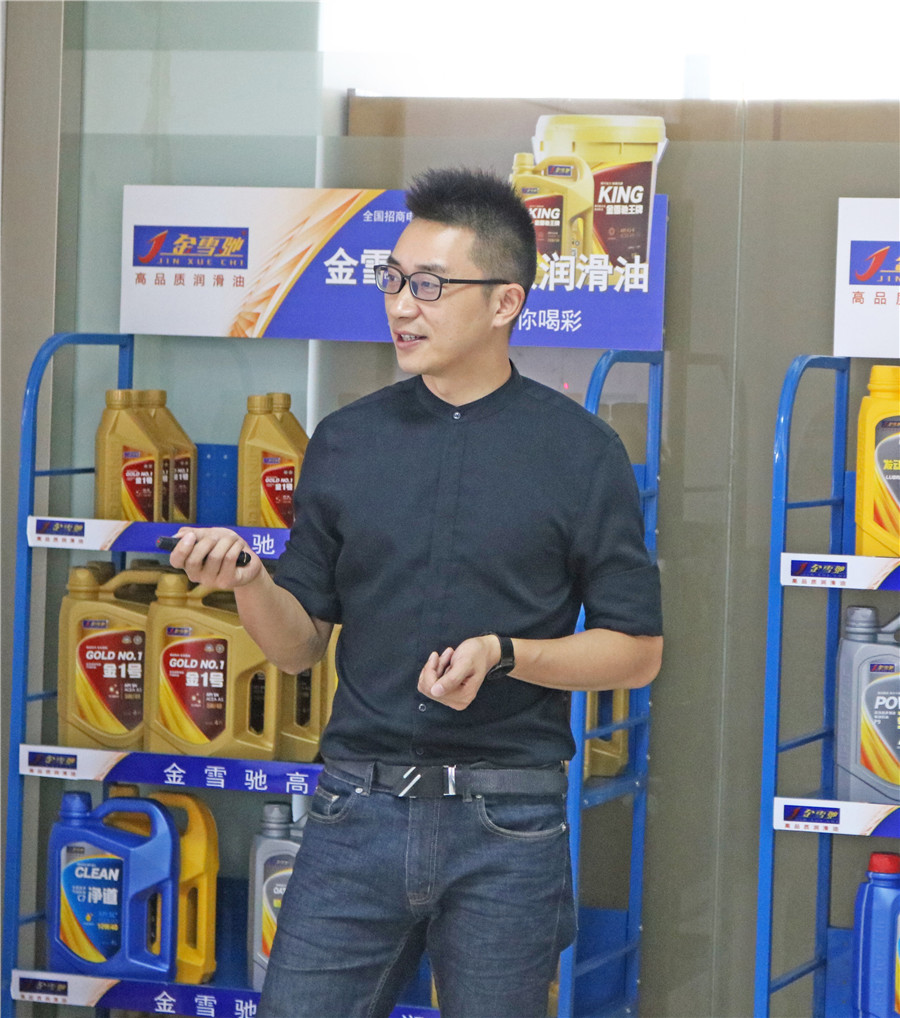 馬鞍山公司華中大區總監丁鵬為客戶們作新產品項目推廣培訓。丁總監為現場客戶講解了金雪馳T族特級S、金雪馳變速箱油等新產品的賣點和項目推廣方案并對客戶提出的專業知識疑問詳細講解,專業、生動的講解受到客戶的熱烈歡迎。