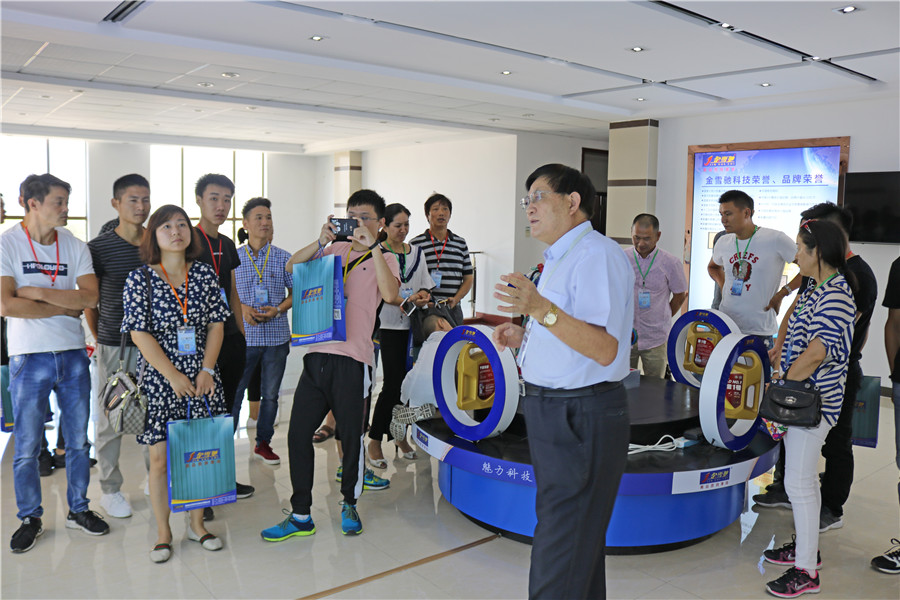 金秋送爽,感恩答謝!為了答謝馬鞍山地區客戶一直以來的支持,進一步加強工廠與用戶之間的深層合作關系,9月8日,馬鞍山地區經銷商及其終端修理廠等一行40余人來到金雪馳潤滑油馬鞍山生產基地參觀學習。
