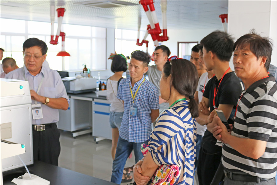 隨后,客戶一行在顏萬桂總工的引領下,來到金雪馳先進潤滑材料研發中心,研發中心齊全高端的精密實驗設備博得客戶的陣陣贊譽,通過這些精密的設備,大家看到的是金雪馳潤滑油對于產品質量的嚴苛管控,客戶們對金雪馳的產品更加放心了。