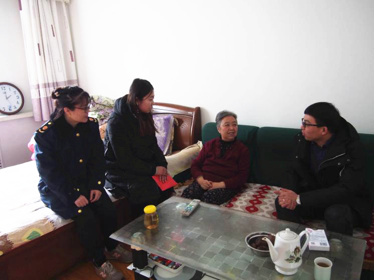 金雪馳愛心小組看望的第二戶困難家庭是一位孤寡老人,老人患有老年癡呆癥,失業(yè)的女兒在家中照料老人,母女兩人相依為命。因年邁且病痛纏身,老人已不能清晰言語,甚至難以分辨親友,但看到我們來訪,她卻難掩熱情與激動(dòng),分別時(shí)還強(qiáng)撐著不便的腿腳與我們送別。