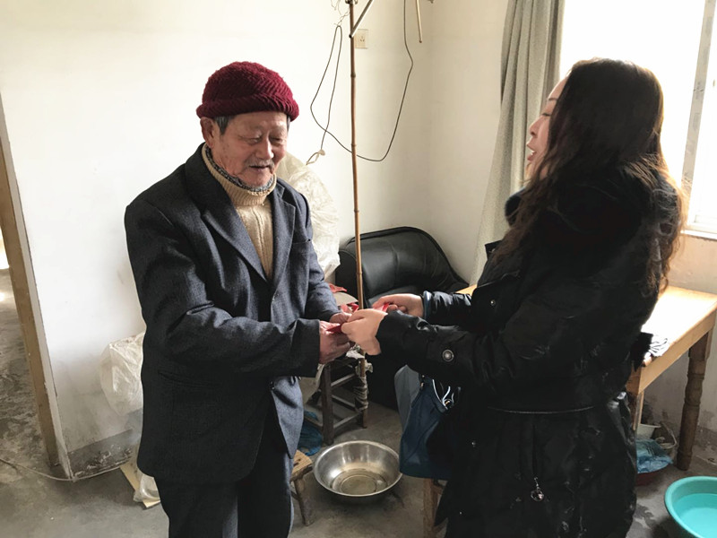 五保戶王思洲身患腳疾,沒有兒女,長期沒有收入來源。當(dāng)金雪馳愛心小組成員進(jìn)門看到老人家中的情景后,都不禁紅了眼眶,用家徒四壁來形容一點(diǎn)也不夸張,老人的家中還掛著輸液用的竹竿,可見平常都是獨(dú)自輸液的,金雪馳愛心小組成員劉玲緊緊握著老人的手說:“老人家,您受苦了,生活上有困難,您可以直接與我們金雪馳聯(lián)系,金雪馳愛心基金就是為了幫助您這樣的人而存在的”。老人抹著眼淚說:“謝謝,謝謝,今年能過個(gè)好年了”,祝愿老人今后的日子里開心幸福,過一個(gè)安詳?shù)耐砟辍?nbsp;
