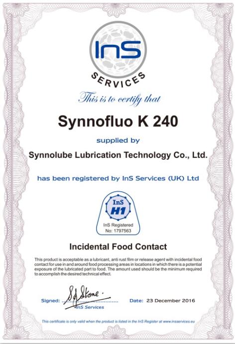 近日,金雪馳科技股份有限公司旗下的Synnofluo K 500、Synnofluo K 240兩項(xiàng)潤(rùn)滑脂產(chǎn)品順利通過(guò)歐洲Ins的H1食品級(jí)認(rèn)證。食品級(jí)潤(rùn)滑產(chǎn)品是指 對(duì)人體無(wú)害的潤(rùn)滑產(chǎn)品;可使用于食品、藥物等生產(chǎn)的制造設(shè)備上。食品級(jí)潤(rùn)滑劑的形態(tài)包含液態(tài)的潤(rùn)滑油、潤(rùn)滑脂、潤(rùn)滑膏等。