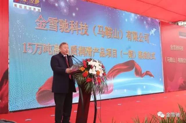 2016年12月18日上午,金雪馳科技(馬鞍山)有限公司15萬噸高品質(zhì)潤滑油項(xiàng)目(一期)落成儀式在馬鞍山市隆重舉行。各級政府、科研院所、合作企業(yè)、社會各界代表近300人參加了本次落成慶典活動。由中科院院士、華東理工大學(xué)黨委常委田禾院士、中國科學(xué)院院士、固體潤滑國家重點(diǎn)實(shí)驗(yàn)室主任劉維民院士、烏魯木齊市人民政府副市長張雪峰、馬鞍山市委副書記、市長左俊、馬鋼集團(tuán)黨委常委、董事副總經(jīng)理陸克從、新疆隆成實(shí)業(yè)集團(tuán)董事長、新疆金雪馳科技股份有限公司董事長劉輝上臺,共同啟動了象征著金雪馳科技15萬噸高品質(zhì)潤滑油項(xiàng)目落成的水晶球。