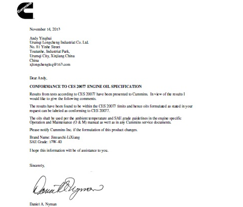 2014,金雪馳產品通過沃爾沃、康明斯、奔馳、SGS等質量和配套標準認證.