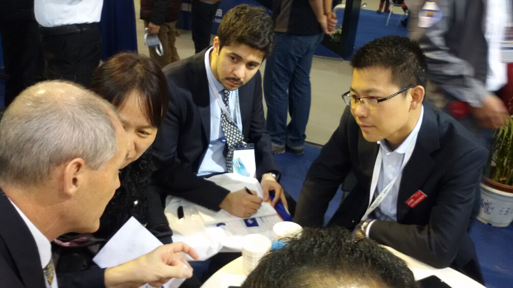 國外客戶在金雪馳展臺深度溝通、洽談合作