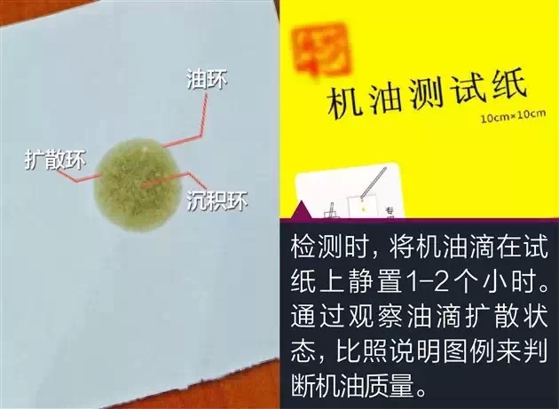 除了需要定期檢查機(jī)油量,機(jī)油的質(zhì)量也是決定我們是否需要更換機(jī)油的重要因素。目前市面上有很多機(jī)油檢測(cè)試紙(定性濾紙),可以幫助我們快速判斷機(jī)油質(zhì)量的好壞。